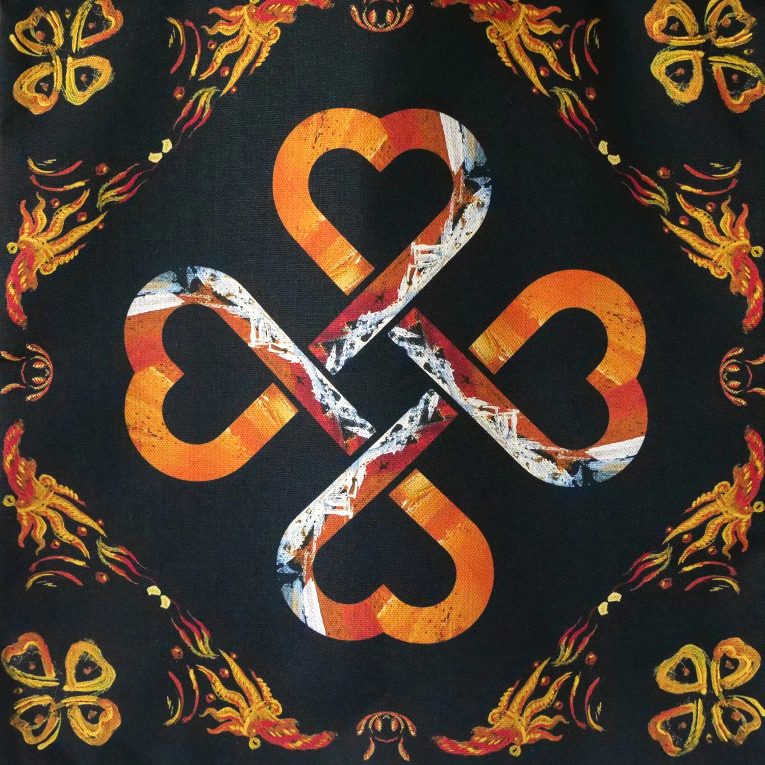 A fiery and bold tote bag, designed by Crescent Collective, that highlights some of the exquisite details on The Laughing Cavalier by Frans Hals.