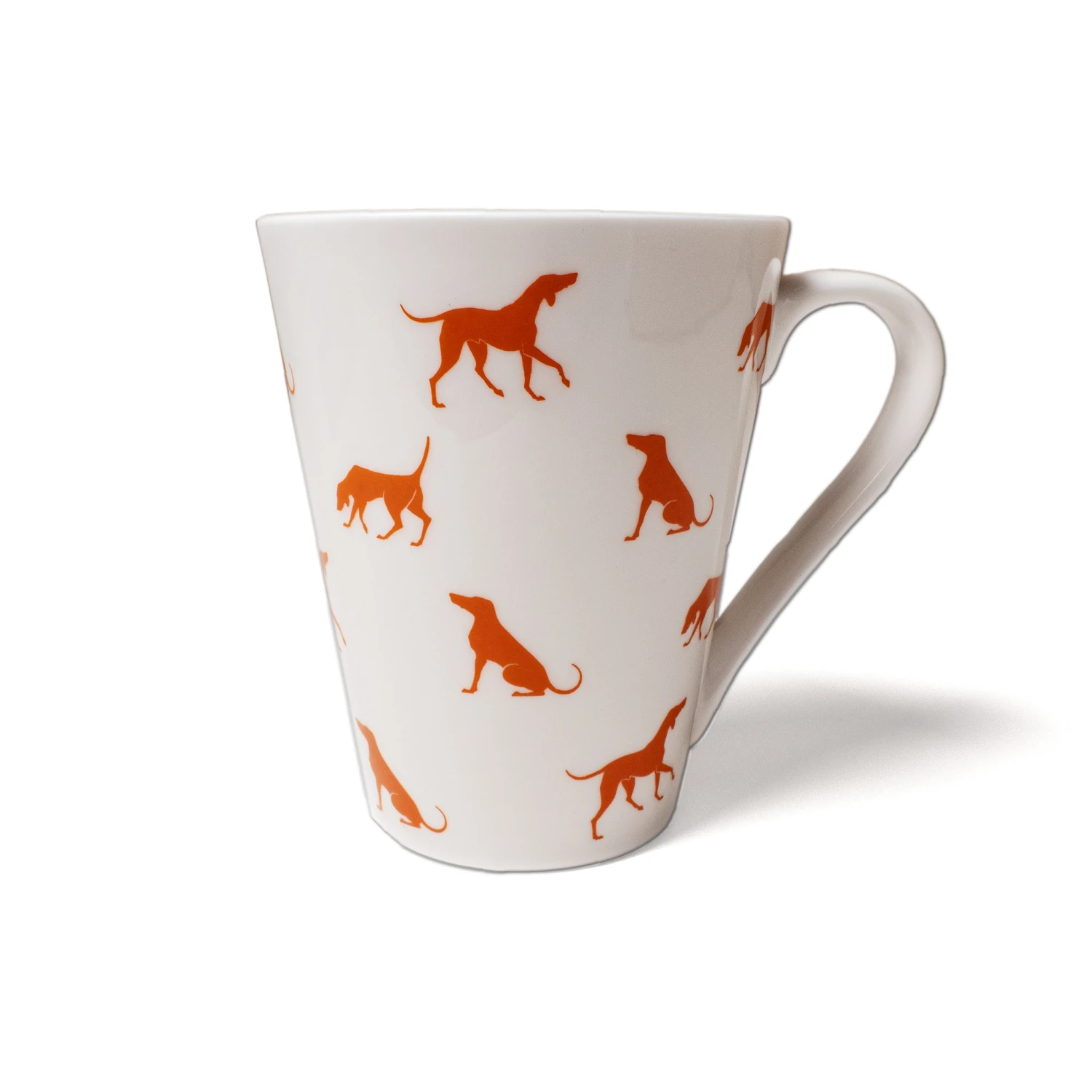 This classic fine bone china mug sports a lovely repeating design of hounds.