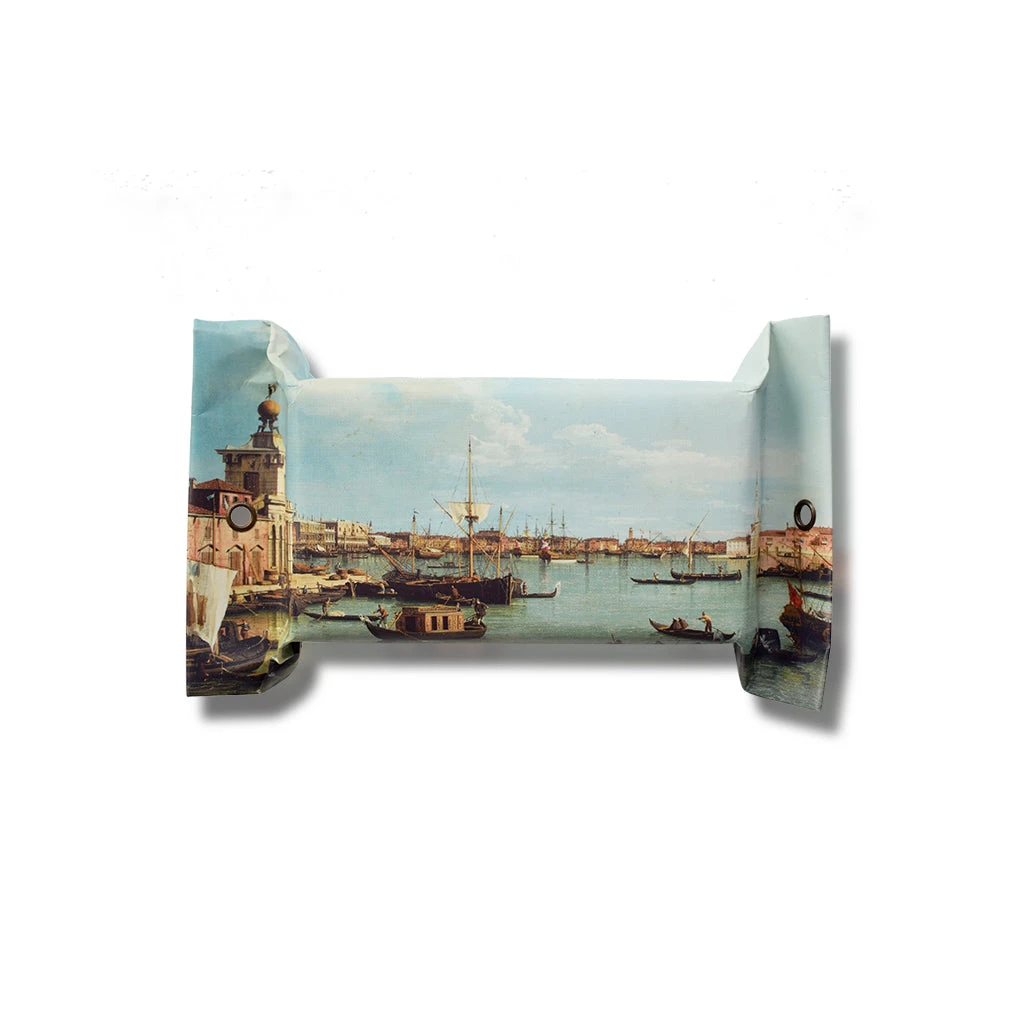 A traditional bar of soap with an ocean breeze fragrance. This single bar comes hand packaged in fully recyclable paper and decorated with a Venice scene from our Canaletto collection.