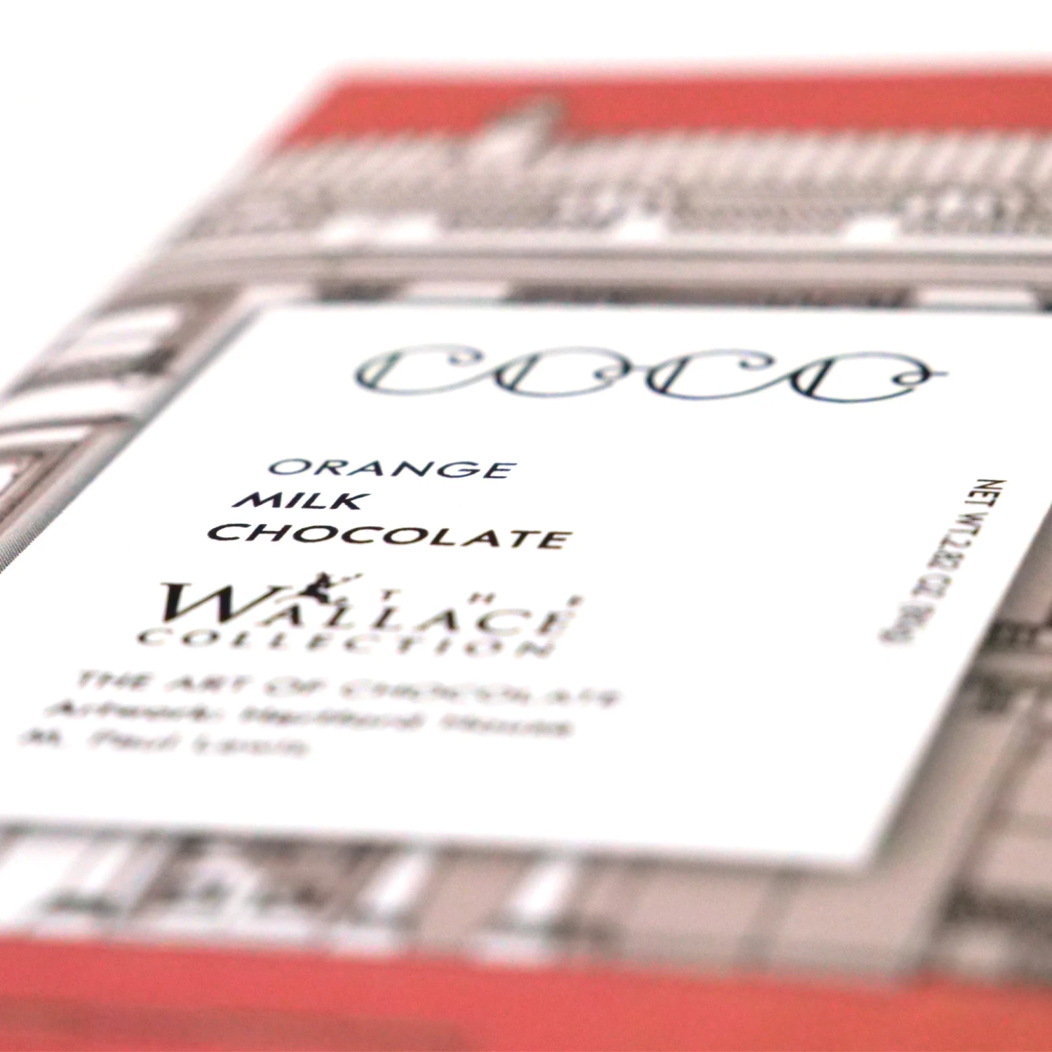 - Ingreients: sugar, cocoa butter, cocoa mass, milk powder 14%, emulsifier: non-gmo soya lecithin, natural vanilla flavour, orange oil(<1%), cocoa solids: 40% Minimum.