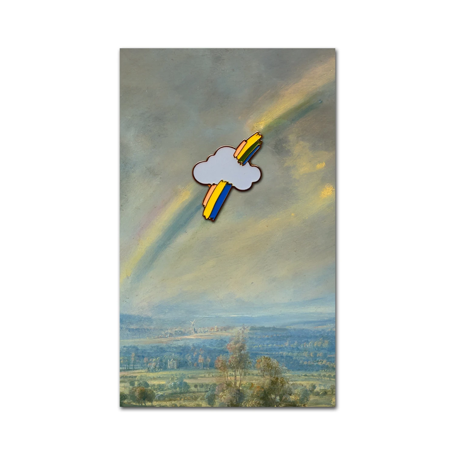 This soft enamel badge takes its design iconic painting The Rainbow Landscape by Peter Paul Rubens. Add a flash of colour to your favourite shirts, tops and coats with our new addition to our pin badge range. Every cloud has a silver lining! – Or in this case, a golden one.