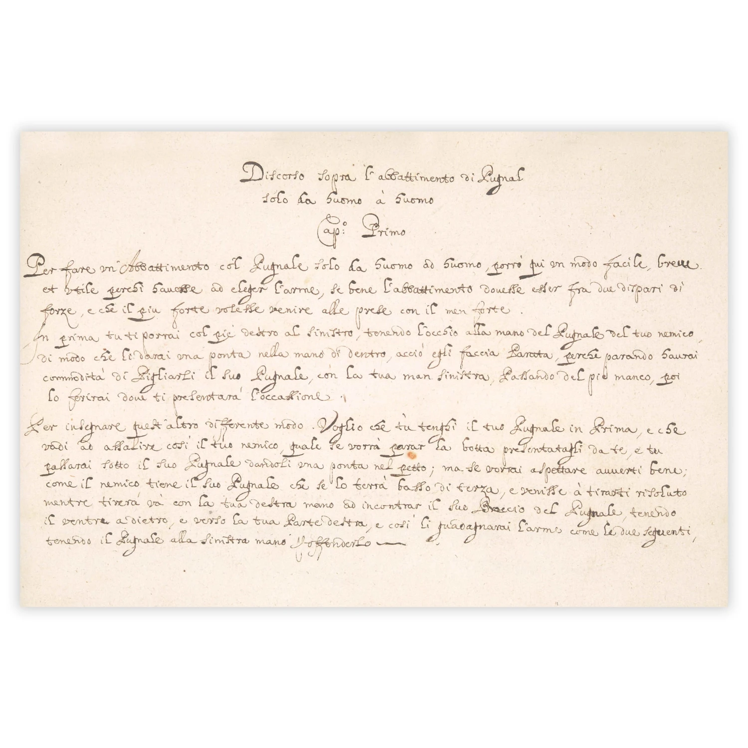 Camillo Palladini’s Discourse on the Art of Fencing is an extraordinary document. Hitherto unpublished and largely unknown, it sheds new light on Italian swordplay at the end of the sixteenth century. Housed in the De Walden Library at the Wallace Collection, it has long been off-limits to researchers and, due its fragility, does not appear on public display.