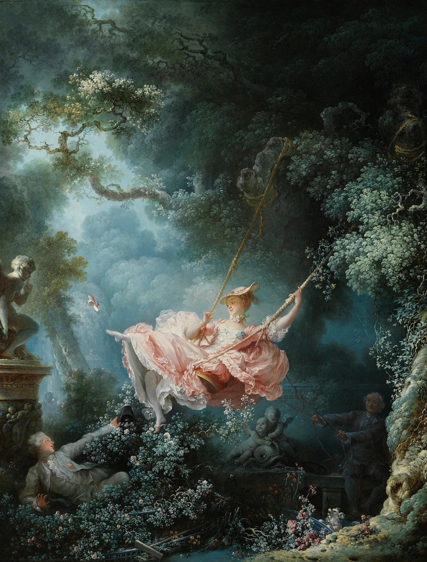 - Painting details: Jean Honoré Fragonard, Les hasards heureux de l’escarpolette (The Swing), Painted c. 1767-1768. Oil on canvas, 81 x 64.2 cm, P430, The Wallace Collection, London